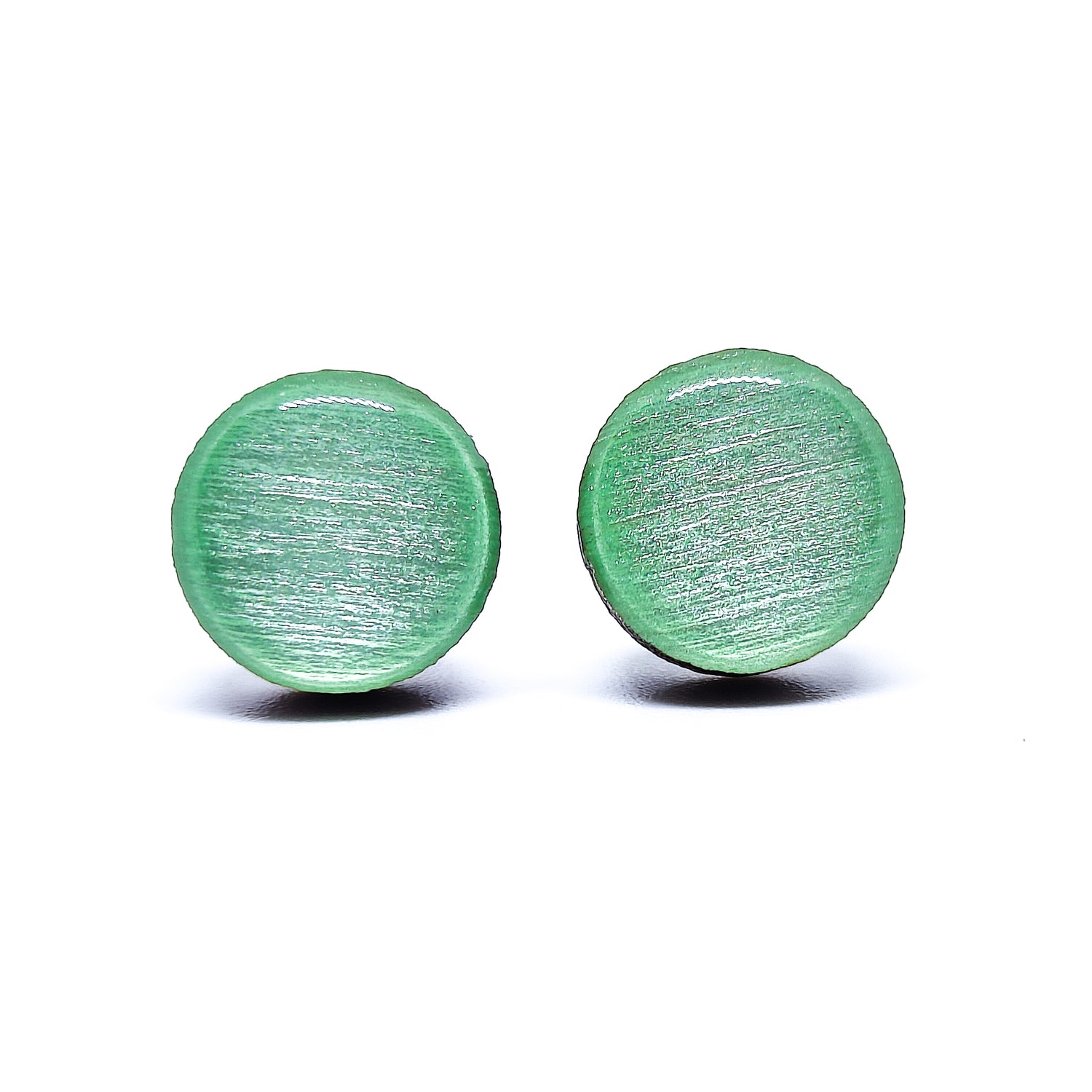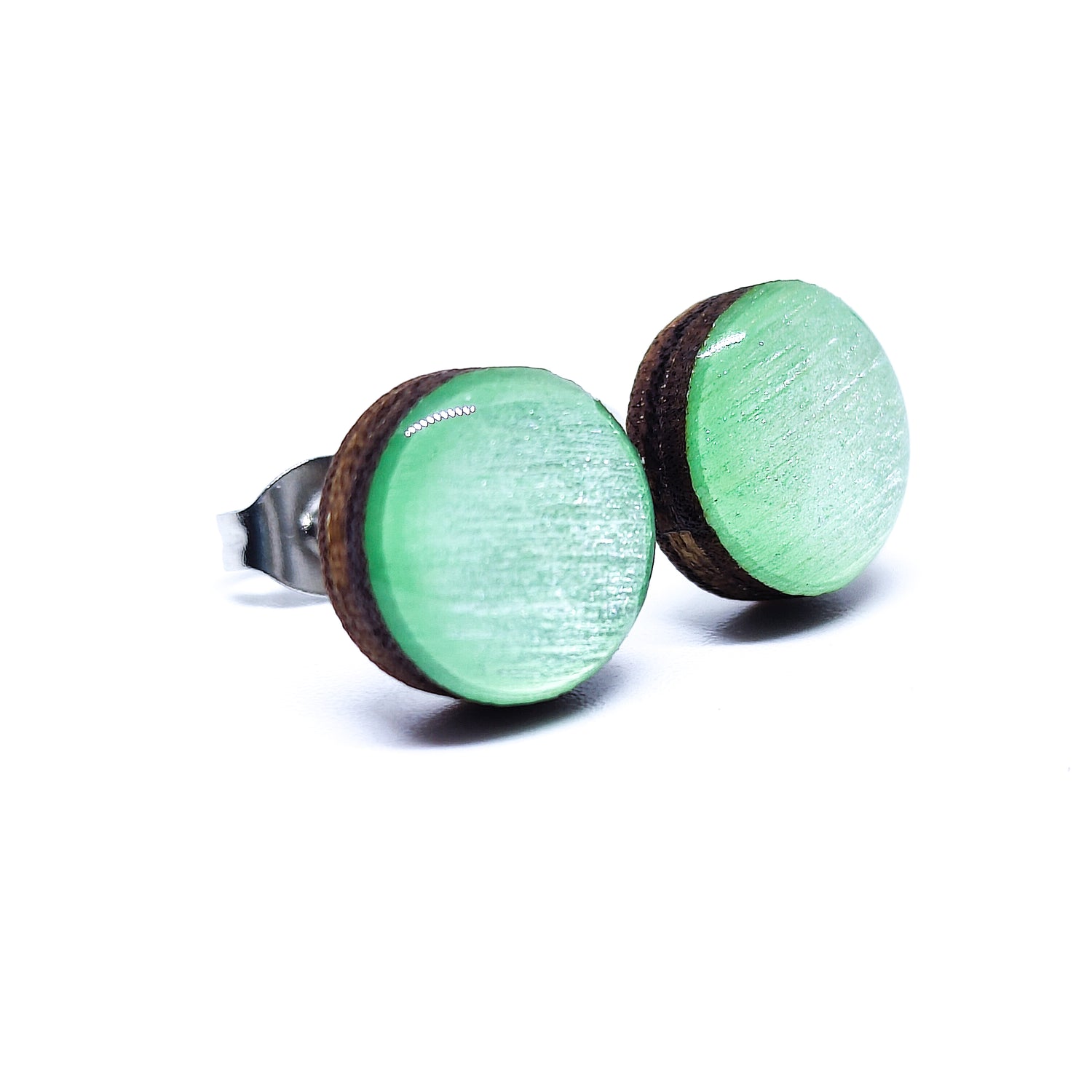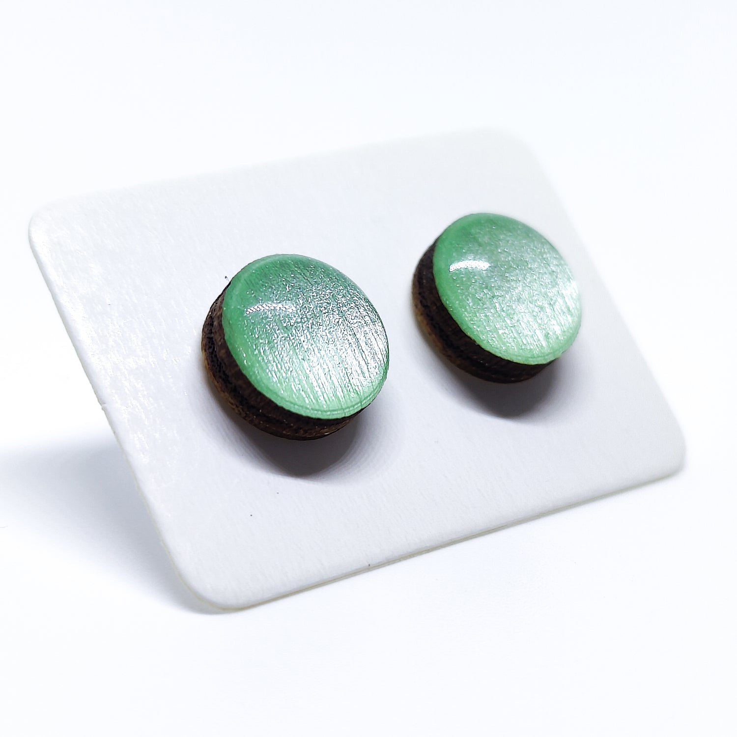 Mint Green Shimmer Stud Earrings | 10 mm Wood & Resin Earrings | Minimalist Simple Small | Girl Gift Women Gift | Stainless Steel Posts for Sensitive ears