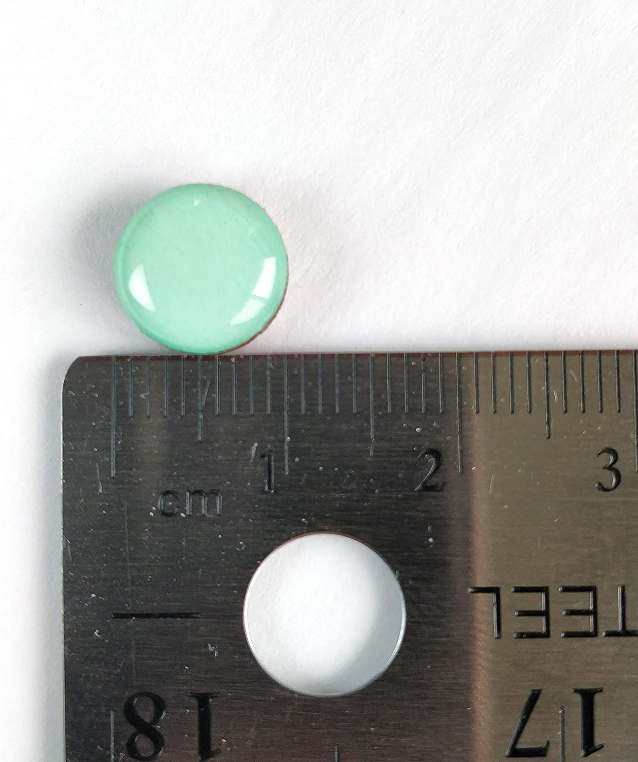 - 10 mm in diameter and 3 mm thick wood and topped with a glossy resin dome