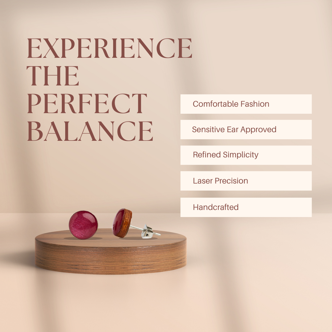 Bright Berry Shimmer Stud Earrings | 10 mm Wood & Resin Earrings | Minimalist Simple Small | Girl Gift Women Gift | Stainless Steel Posts for Sensitive ears